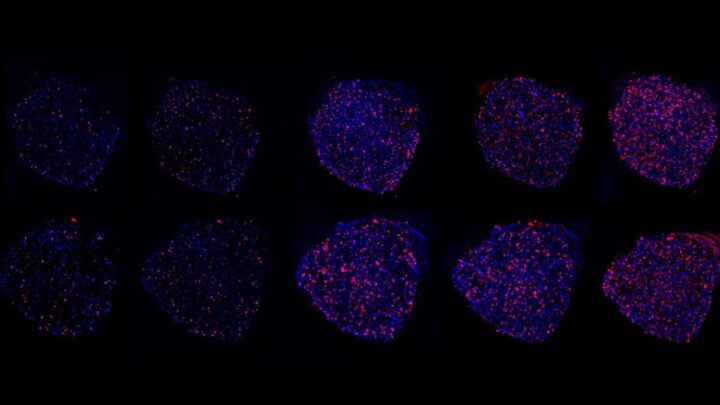 Esta imagem microscópica captura como a microgravidade permite que as células cancerígenas se auto-organizem em aglomerados, imitando o seu comportamento no corpo humano. Crédito: Encapsulate, via ISS National Laboratory (julho, 2025)